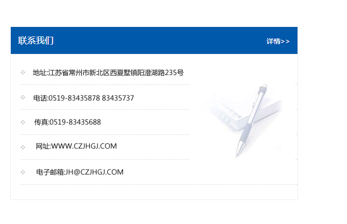 地址:常州市新北區(qū)友邦商務(wù)大廈1幢16、17層  電話:0519-85101652  傳真:0519-85112595  郵編:213022  網(wǎng)址:www_cz-jiayue_cn.srsy888.com  郵箱:xiajifengaa@163.com